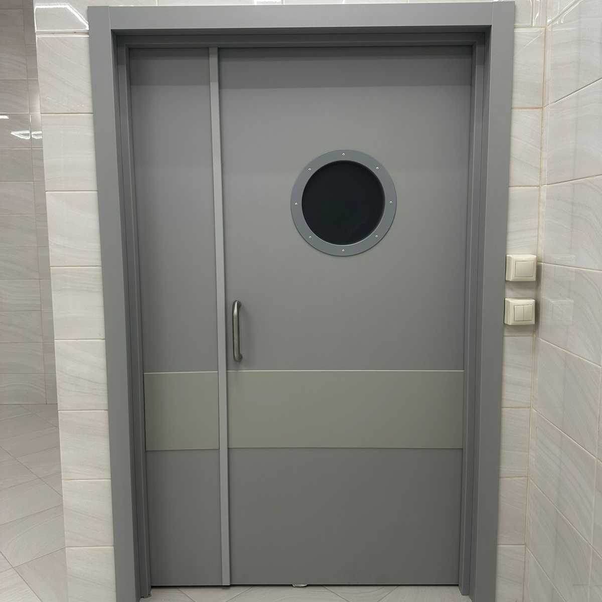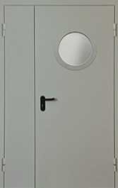 Дверь противопожарная полуторная с остеклением (круглое окно)