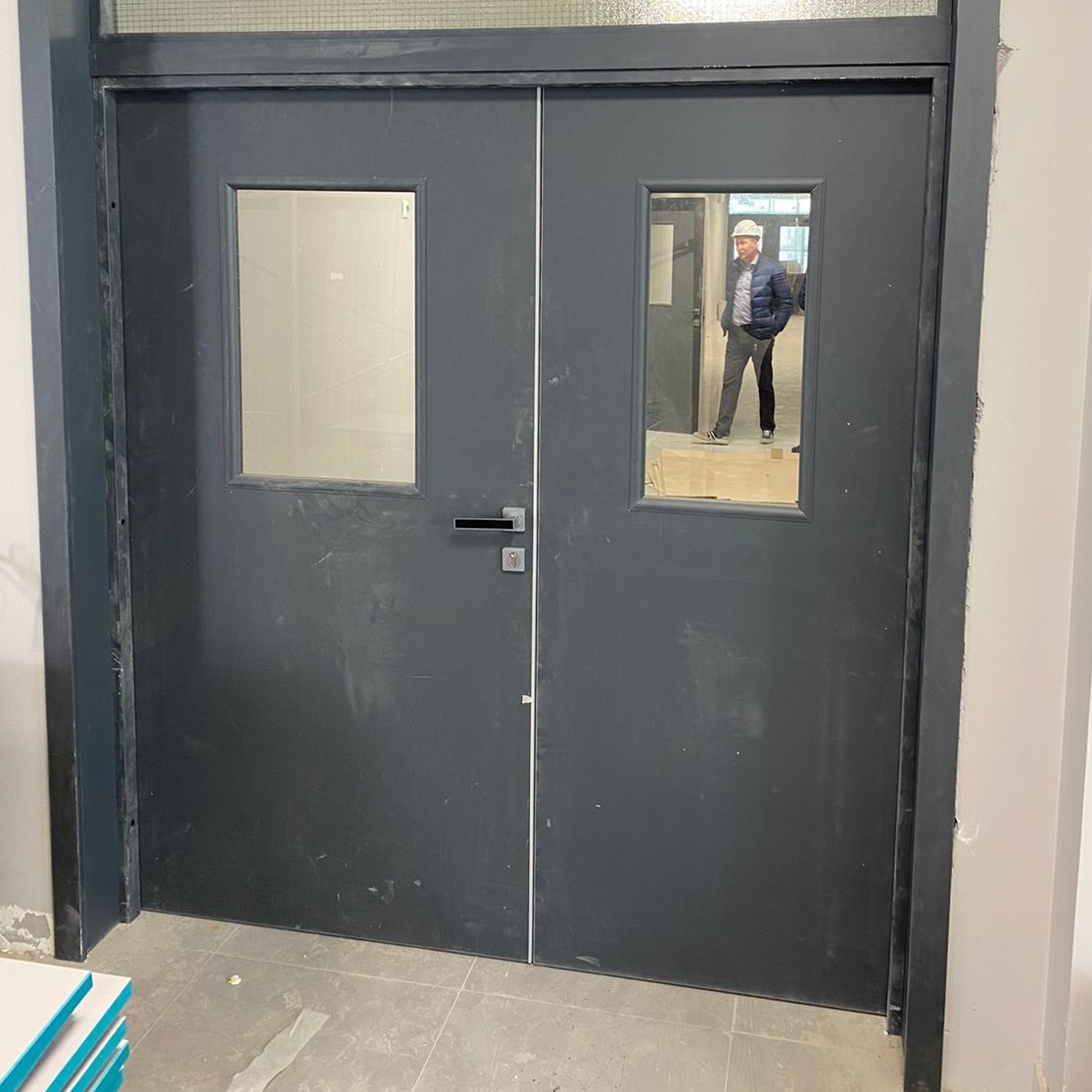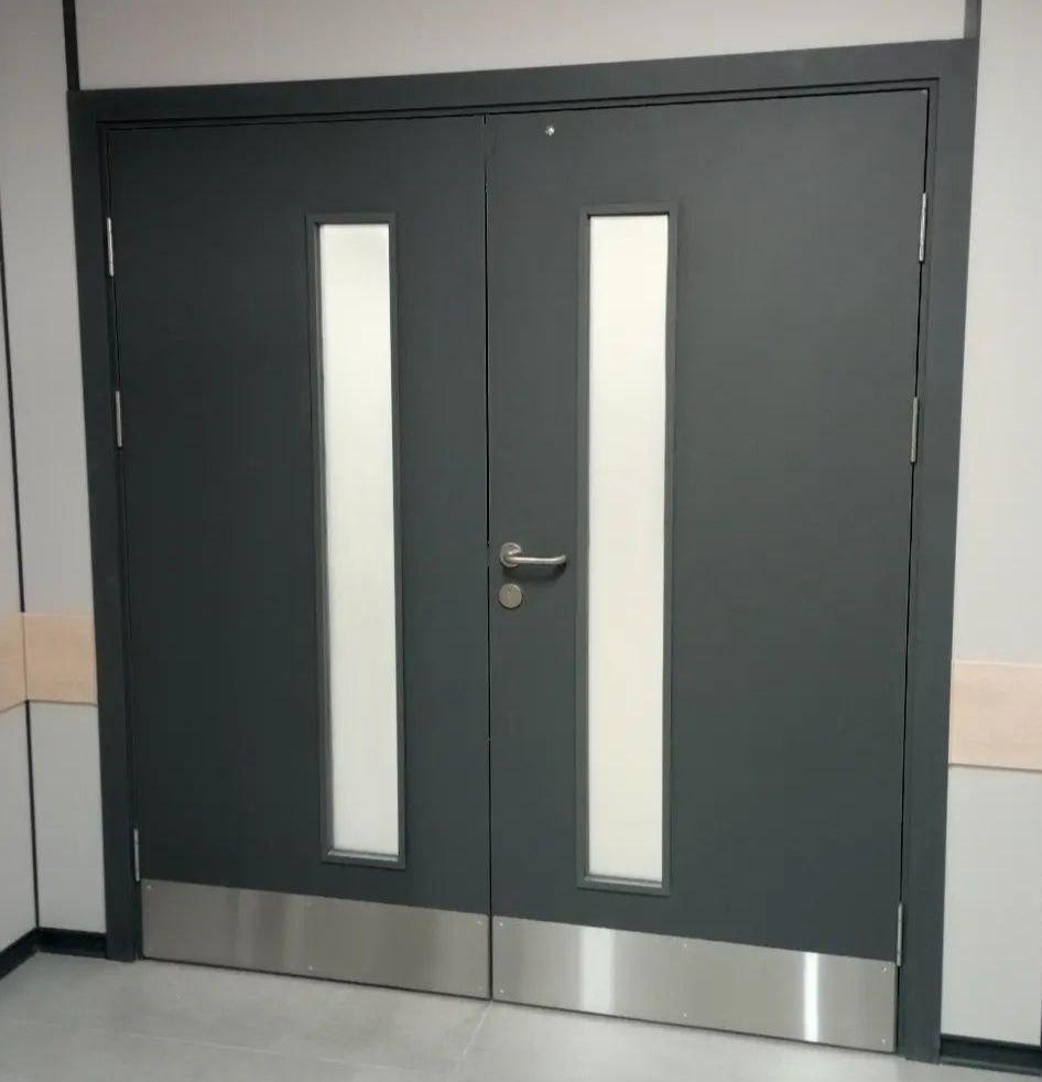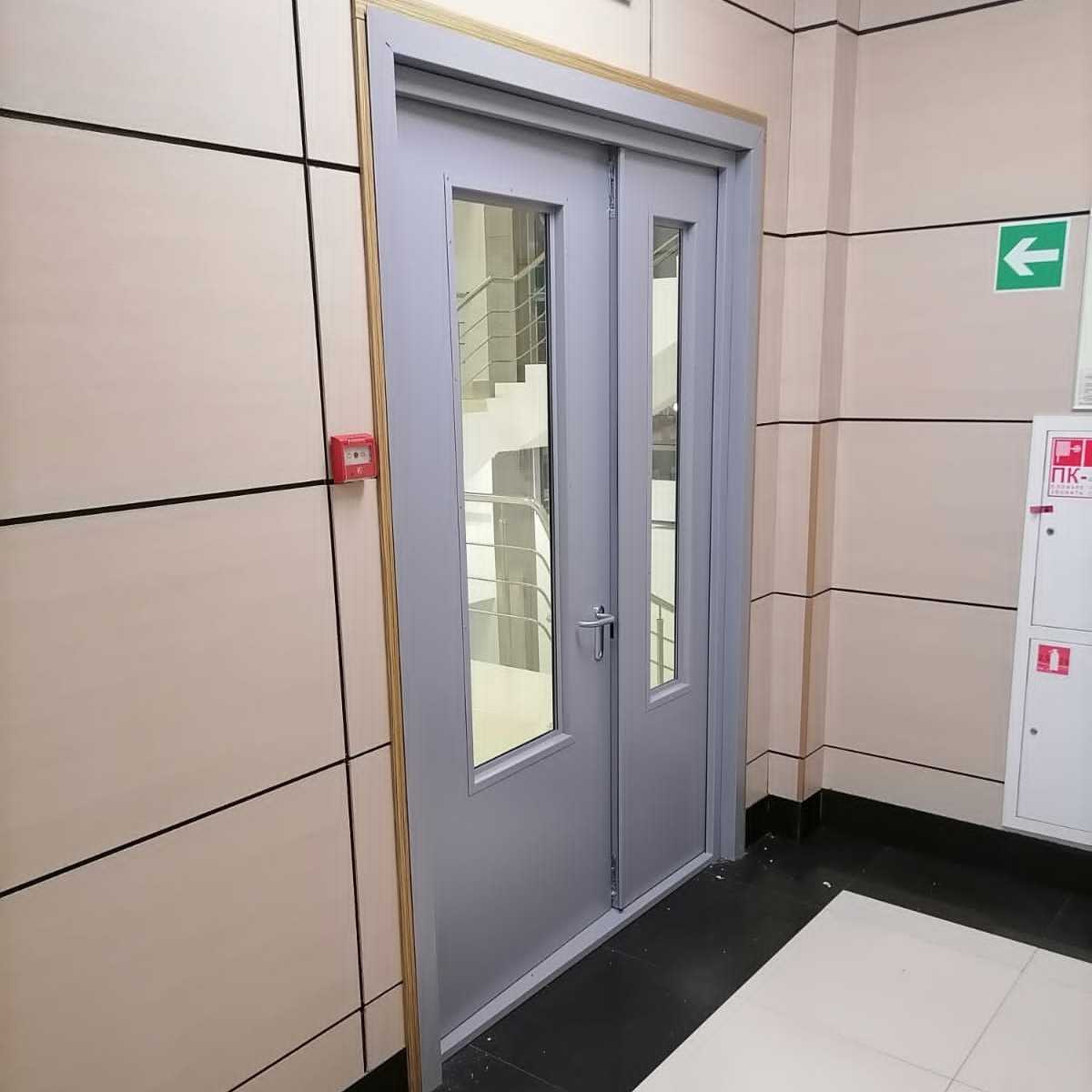 Противопожарная двупольная дверь «Антипаника» с остеклением