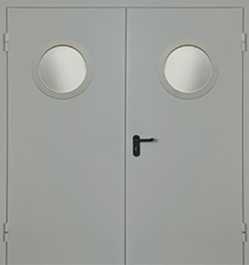 Дверь противопожарная двупольная с остеклением до 25% (круглое окно)