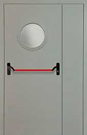 Дверь противопожарная полуторная Антипаника с круглым окном